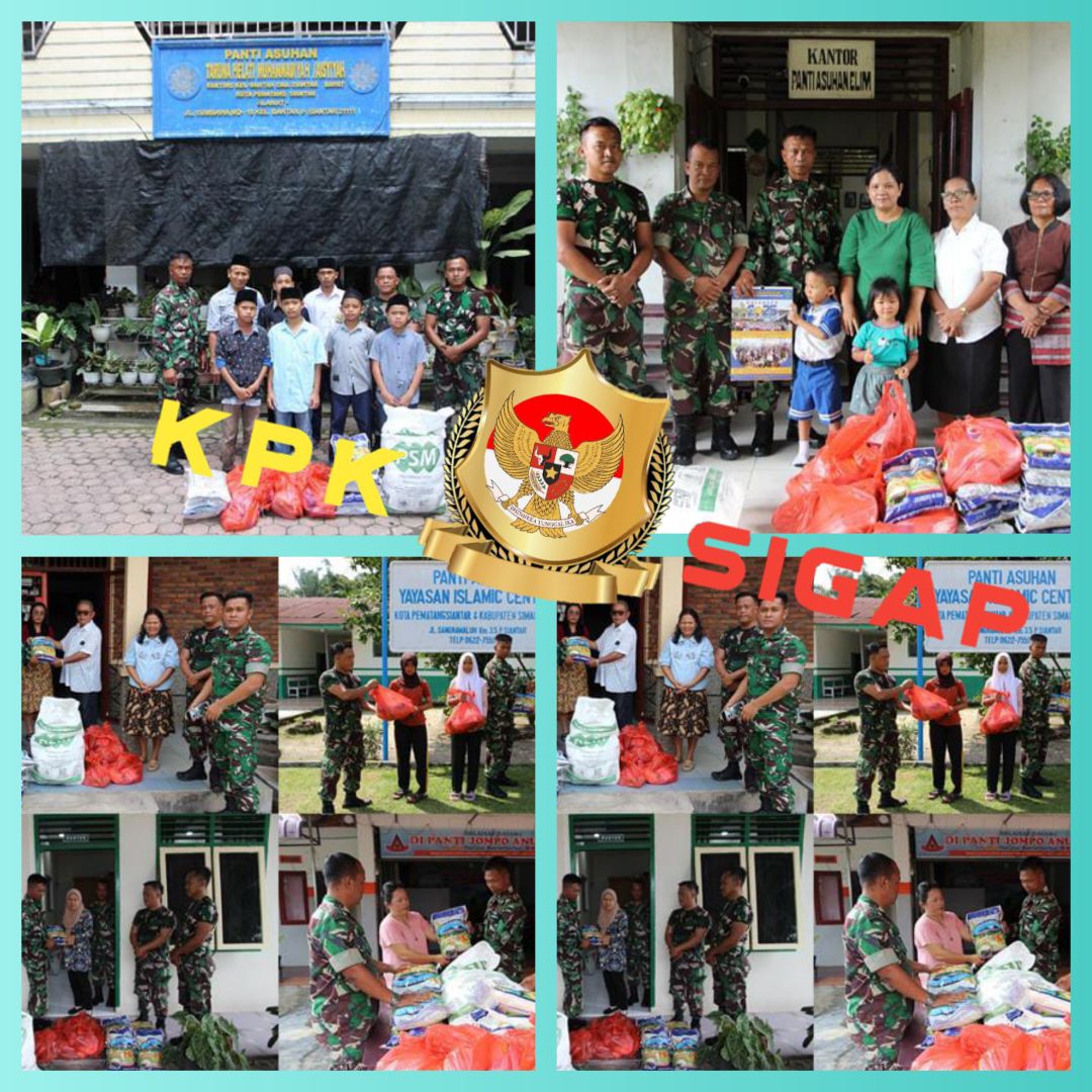 Pembagian Sembako dari Danrem 022/PT kepada Panti Jompo dan Panti Asuhan di Wilayah Kota Pematang Siantar dan Kabupaten Simalungun, diantaranya Panti Jompo Anugerah Jalan Ragi Hidup No 4 Siantar Simalungun Kab. Simalungun, Panti Jompo Joyy Jl Sekka Nauli Siantar Utara, Panti Asuhan Islamic Centre Jl Asahan No 22 Marihat Baris, Panti Asuhan Aisyiyah Jl Perak Siantar Utara Parluasan, Panti Asuhan Taruna Melati Jl Sumbawa I Kel Bantan Pematangsiantar, Panti Asuhan Grace House Jl Mufakat Parluasan, Panti Asuhan Filadelpia Jl Patimura ujung Pintu Bosi, Panti Asuhan Elim Jl Ahmad Yani No 63 Pematangsiantar dan Panti Asuhan Mambre GKPI Jl H Ulakma Sinaga Simalungun.