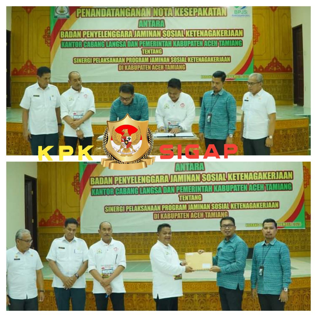 Pemkab Aceh Tamiang bersama Badan Penyelenggara Jaminan Sosial (BPJS) Ketenagakerjaan Kantor Cabang Langsa melakukan Penandatanganan Nota Kesepakatan (MoU) tentang Sinergi Pelaksanaan Program Jaminan Sosial Ketenagakerjaan di Kabupaten Aceh Tamiang.kamis( 05/09/2024 )
