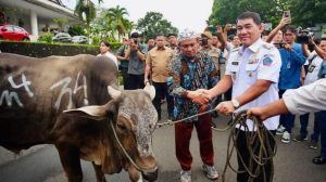 Dalam semangat berbagi dan mempererat tali silaturahmi antarumat beragama, Pemerintah Provinsi Sulawesi Utara (Pemprov Sulut) menyerahkan secara simbolis 66 ekor sapi kurban dalam rangka menyambut Hari Raya Idul Adha 1446 Hijriah, di hadiri dan diserahkan langsung oleh Gubernur Sulut “Yulius Selvanus”. Kegiatan berlangsung di Halaman Belakang Kantor Gubernur Sulut pada Rabu pagi (4/6/2025).