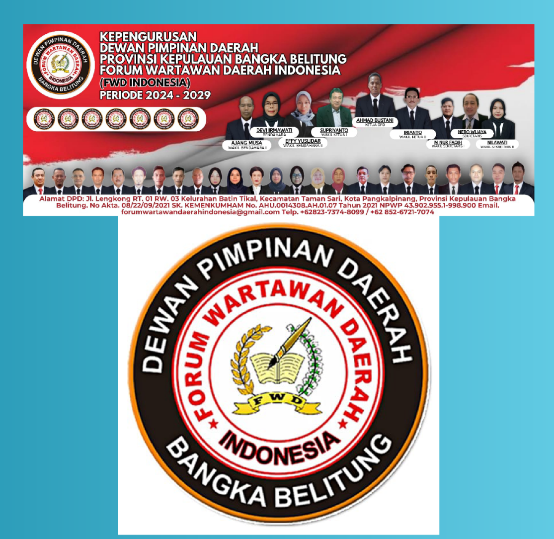 Pangkalpinang,kpksigap.com – Kepengurusan Forum Wartawan Daerah (FWD) Indonesia Provinsi Kepulauan Bangka Belitung Masa Bakti 2024-2029 Agustus dilantik dan dikukuhkan, Kamis (27/6/2024). Pelantikan akan dilaksanakan salah satu hotel di kota Pangkalpinang.
