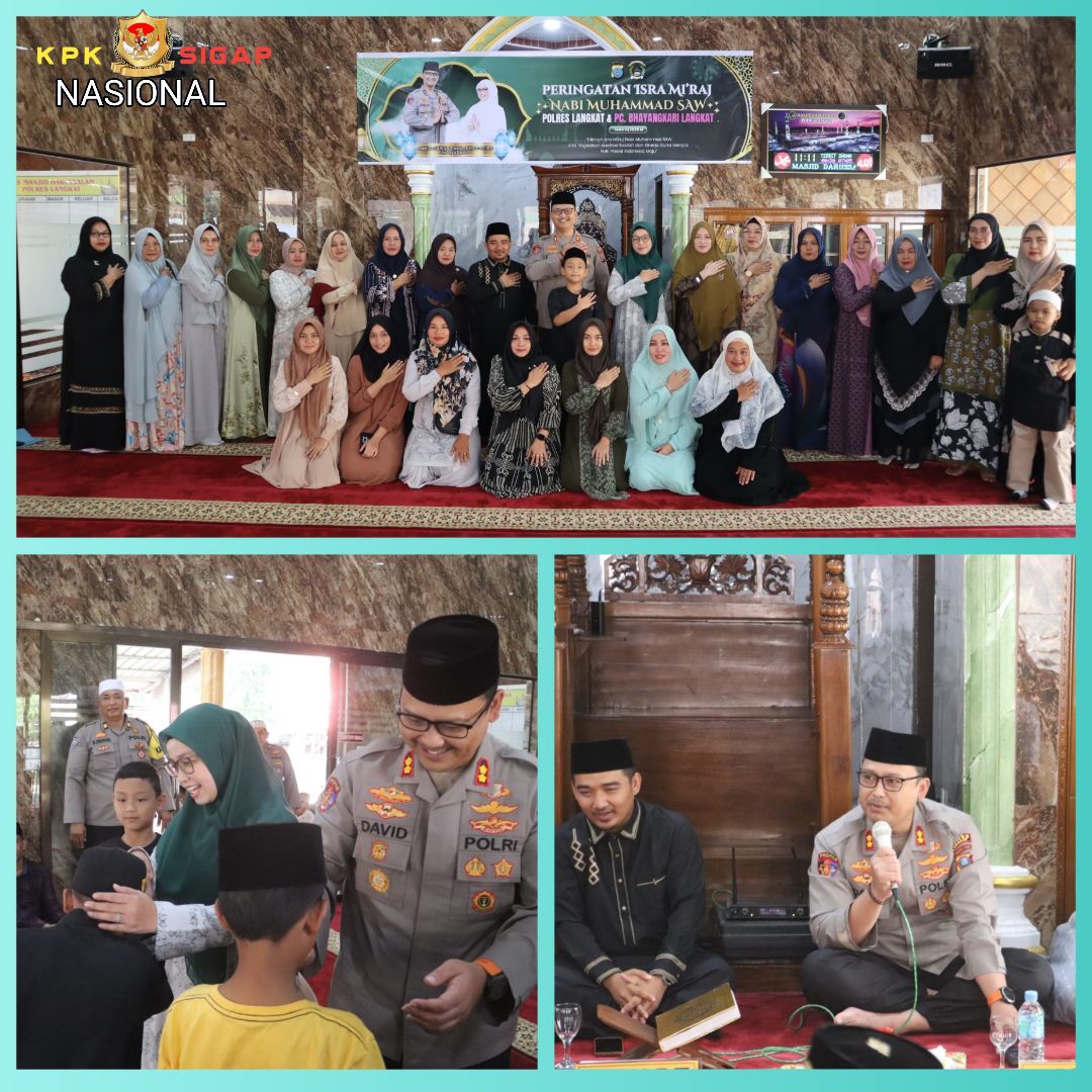 Polres Langkat Polda Sumut menggelar acara peringatan Isra Mi’raj Nabi Besar Muhammad SAW Tahun 1446 H / 2025 M dengan tema “Hikmah Isra Mi’raj Nabi Besar Muhammad SAW Kita Tingkatkan Kualitas Ibadah dan Kinerja Guna Menjadi Polri Presisi Indonesia Maju “. Acara tersebut diselenggarakan di Masjid Darussalam