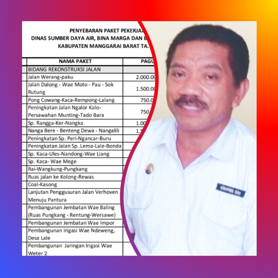 Adapun pekerjaan fisik hanya 60 paket dengan Total pagu sebesar Rp 45 miliar. Puluhan paket fisik ini kata Dia, adah untuk jalan dan jembatan serta jaringan irigasi yang tersebar di 10 kecamatan dari total 12 kecamatan di Kabupaten Manggarai Barat.