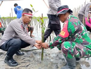 Terimakasih pak camat,pak Danramil, pak kepala kampung dan pengelola Aksenta yang telah mensupport kegiatan ini, kemudian ada pihak dari PT. DLJ, PT. TBPP Terimakasih banyak telah hadir mensupport kegiatan ini semoga kegiatan ini bisa membawa manfaat dan keberkahan. Tutup Iptu Didik Sulistyo,SH. Selaku Pelaksana Kegiatan Penanaman Pohon Mangrove di Pantai Kampung Dumaring.