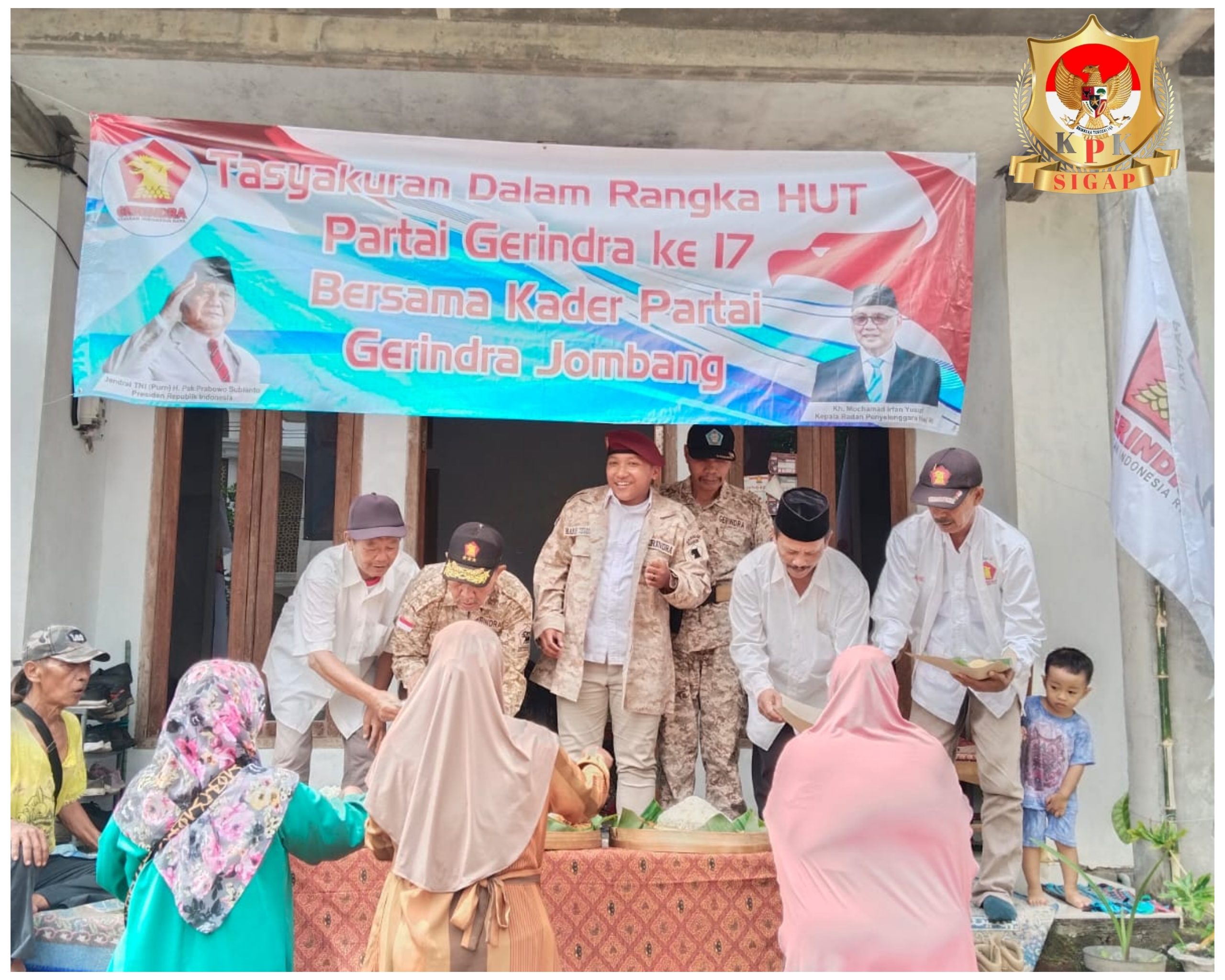 Selebihnya acara tersebut di tutup dengan pembacaan doa dan dilanjutkan dengan pemotongan tumpeng serta berbagi sedikit rezeki kepada anak anak  para kader Gerindra tersebut.
