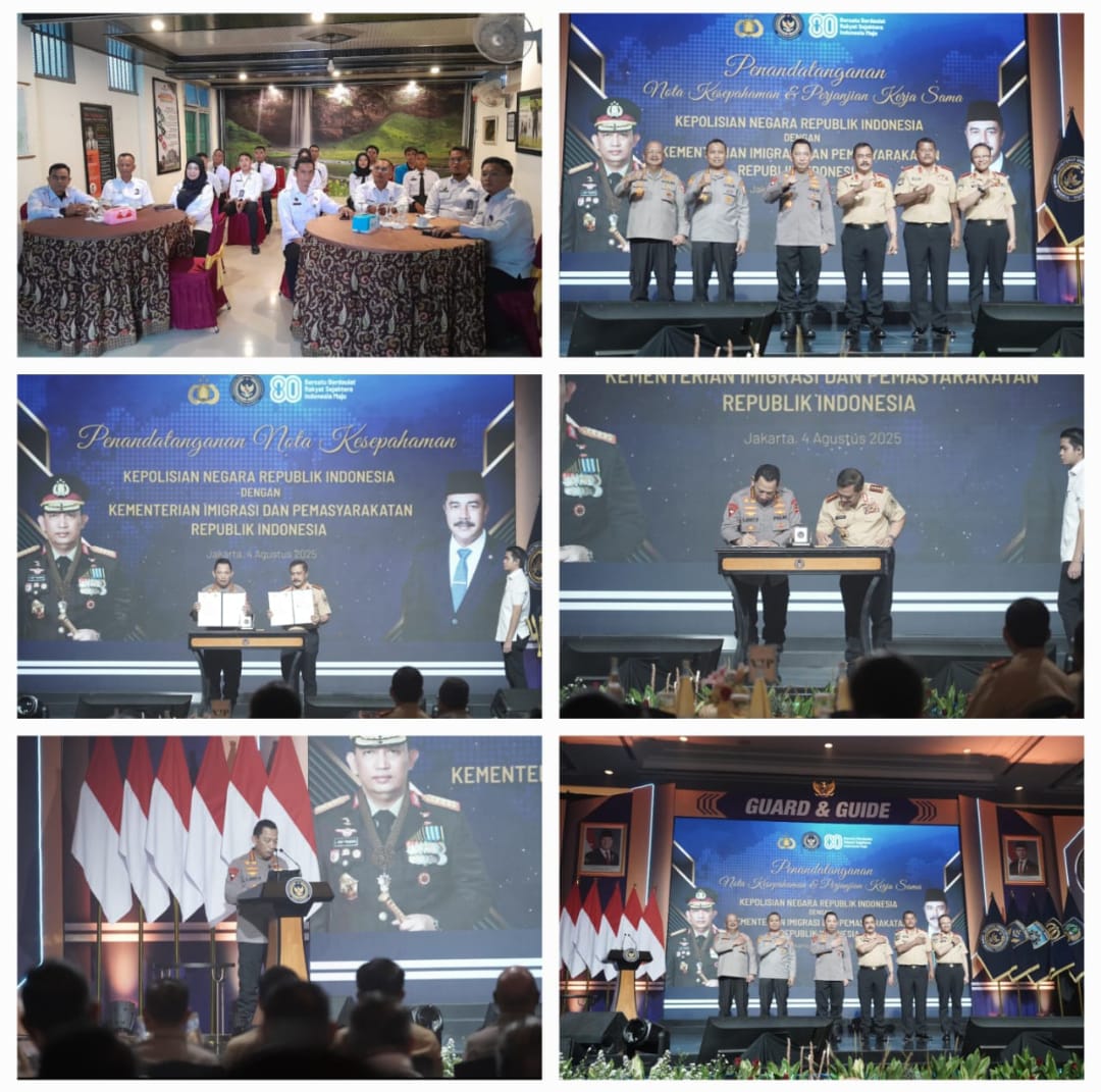 JAKARTA,kpksigap.com-Upaya membangun sinergi yang lebih kuat antara Kementerian Imigrasi dan Pemasyarakatan (Kemenimipas) dan Kepolisian Republik Indonesia (Polri) resmi diwujudkan melalui penandatanganan nota kesepahaman dan sejumlah perjanjian kerja sama. Bertempat di Hotel Shangri-La,Jakarta, penandatanganan ini dilakukan langsung oleh Menteri Imipas, Agus Andrianto, bersama Kapolri, Jenderal Listyo Sigit Prabowo, dalam rangkaian kegiatan Rapat Koordinasi Dukungan Manajemen Kemenimipas.Jakarta (5/8/2025).