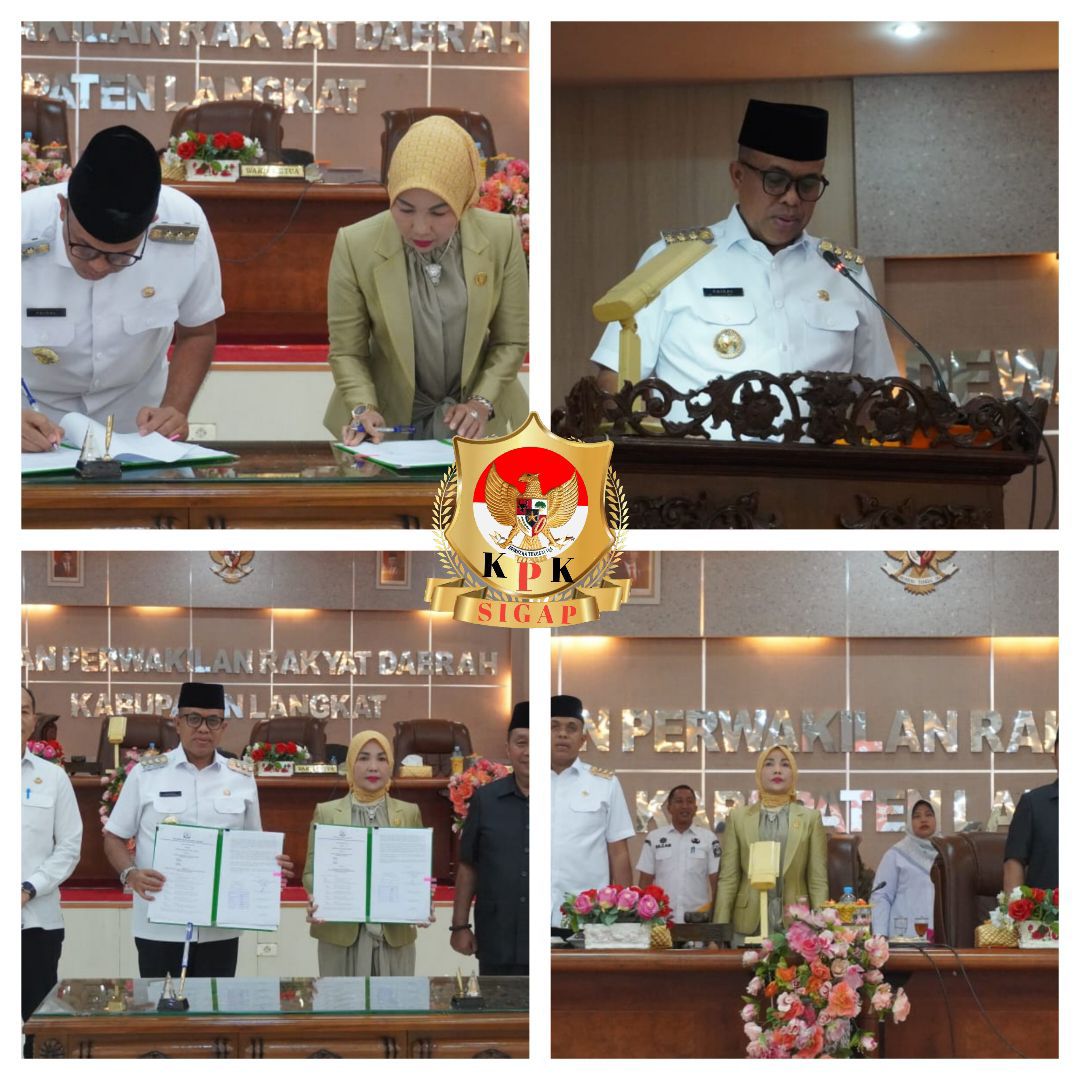Pj. Bupati Langkat, H.M. Faisal Hasrimy, AP., M.AP., menghadiri Rapat Paripurna DPRD Kabupaten Langkat untuk penandatanganan Nota Kesepakatan Kebijakan Umum Perubahan Anggaran (KUPA) dan Prioritas Plafon Anggaran Sementara (PPAS) Perubahan APBD Kabupaten Langkat Tahun Anggaran 2024, Rabu (24/07/2024).