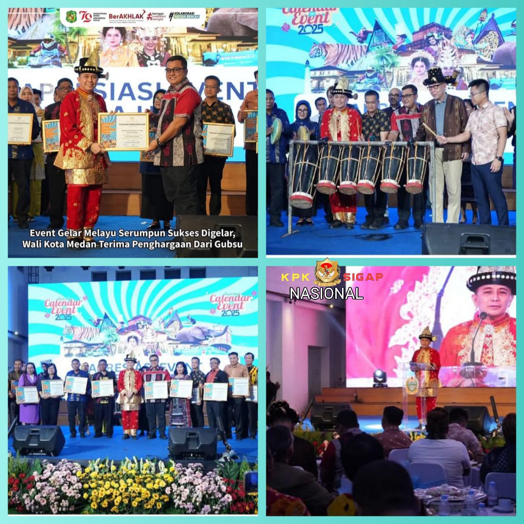 Wali Kota Medan Bobby Nasution terima penghargaan dari Gubernur Sumatera Utara di bidang pariwisata. Penghargaan ini diserahkan berkat dedikasi dan suksesnya penyelenggaraan event Gelar Melayu Serumpun pada Karisma Event Nusantara (KEN) 2024.