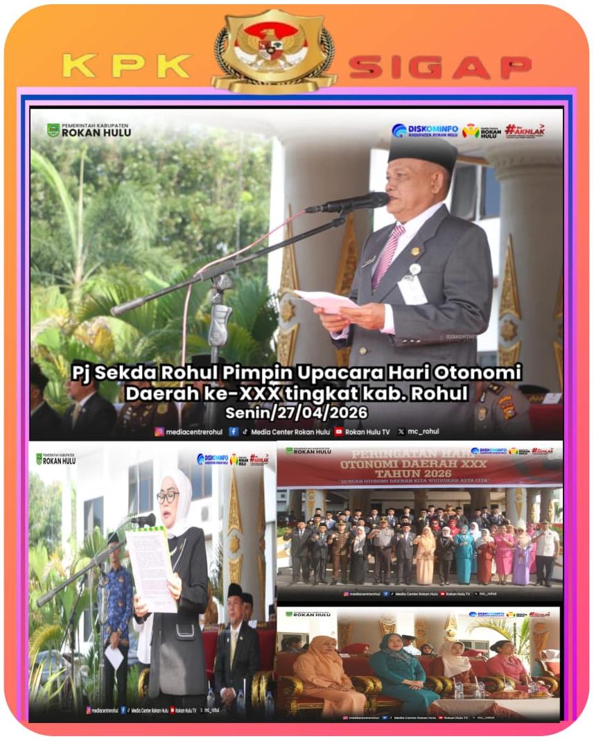 Rokan Hulu,kpksigap.com – Pemerintah Kabupaten Rokan Hulu (Rohul) menggelar Upacara Peringatan Hari Otonomi Daerah (OTDA) ke-XXX tahun 2026 di Halaman Kantor Bupati Rokan Hulu, Senin (27/04/2026). Upacara tahun ini mengusung tema besar, “Dengan Otonomi Daerah, Kita Wujudkan Asta Cita”.