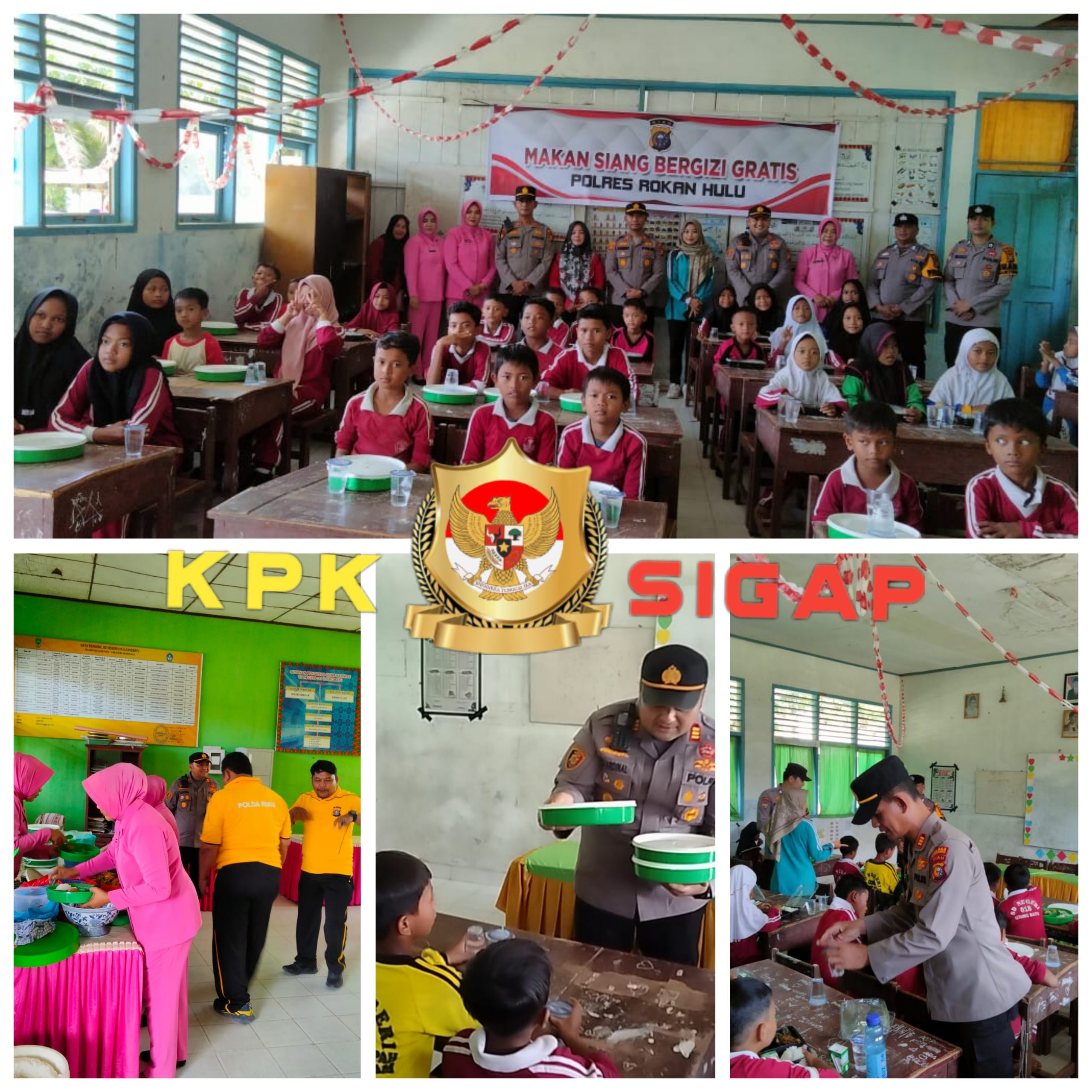 Polres Rokan Hulu menggelar kegiatan pemberian makan siang bergizi gratis untuk siswa-siswi di Kecamatan Ujung Batu pada Sabtu, (25/01/2025). Acara yang dimulai pukul 10.30 WIB ini berlangsung meriah dan penuh kebersamaan, bertujuan untuk mendukung kesehatan serta kesejahteraan anak-anak sekolah dasar.