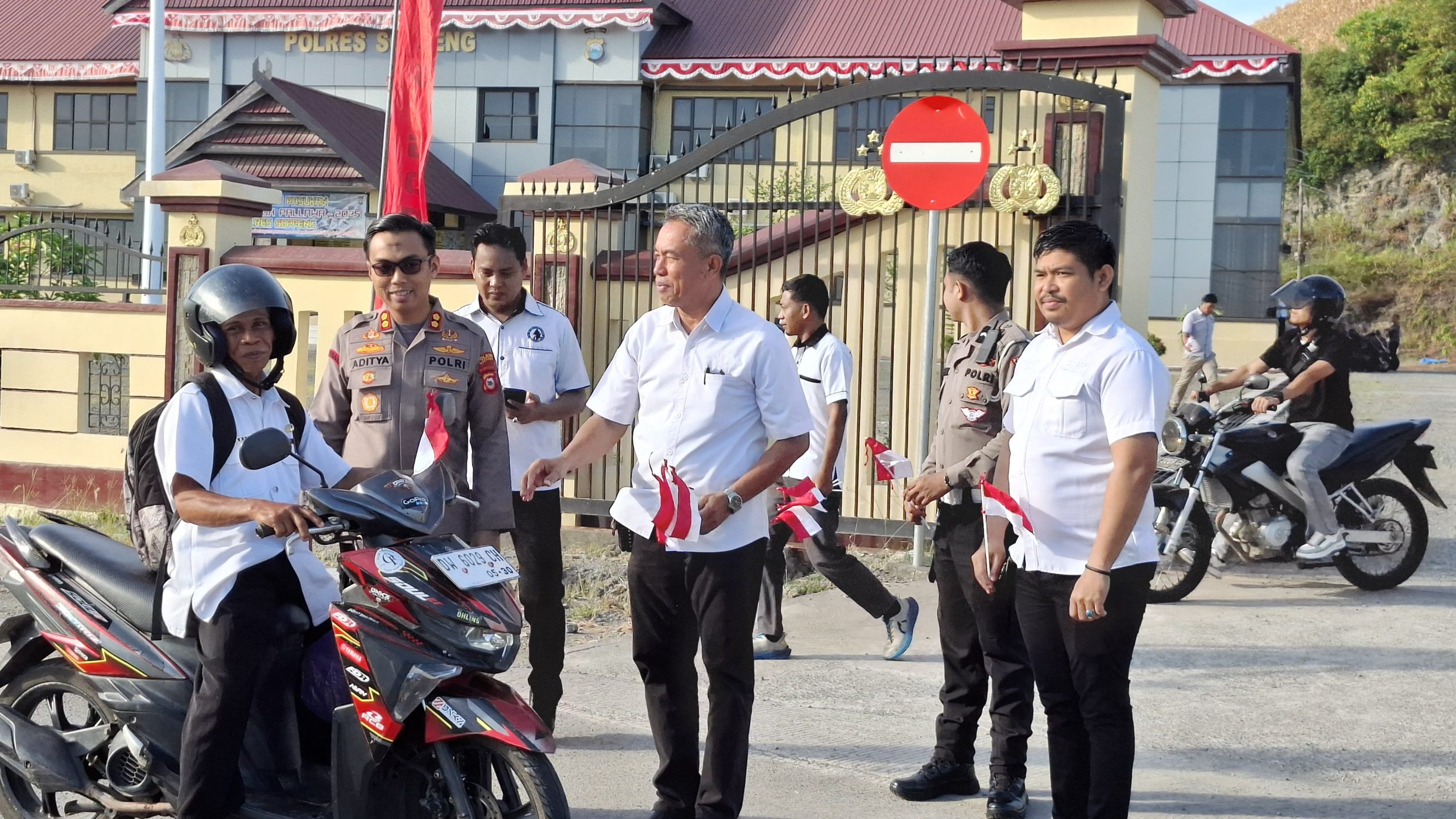 Sebanyak 20 lembar Bendera Merah Putih dibagikan kepada masyarakat sebagai bentuk ajakan untuk turut mengibarkan bendera di rumah masing-masing selama bulan kemerdekaan. Kegiatan ini tidak hanya menjadi simbol peringatan hari besar nasional, tetapi juga sebagai upaya Polres Soppeng dalam menanamkan semangat kebangsaan dan cinta tanah air kepada seluruh lapisan masyarakat.