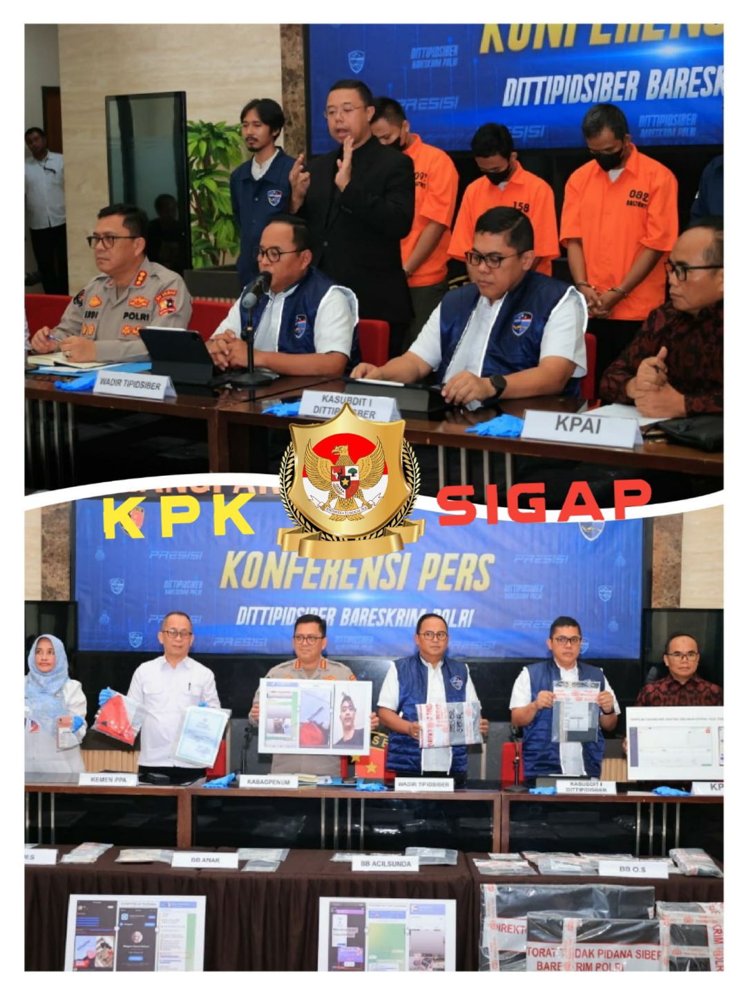 kpksigap.com , Jakarta— Direktorat Tindak Pidana Siber (Dittipidsiber) Bareskrim Polri kembali menunjukkan komitmennya dalam memberantas kejahatan siber dengan menangkap seorang tersangka yang diduga mengelola situs penyebar konten pornografi anak. Dalam Konferensi Pers kali ini dihadiri oleh Kasubdit I Dittipidsiber Bareskrim Polri beserta Penyidik, Komisioner KPAI, Kementerian PPPA, dan Kepala UPT Pusat PPA DKI Jakarta.