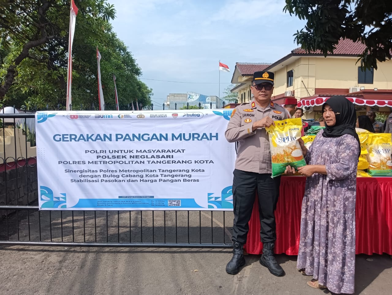 AKP Imron Mas’ad S.H.,M.H Kapolsek Neglasari, menjelaskan kepada media kegiatan tersebut dalam rangka Gerakan Pangan Murah polri untuk masyarakat berupa, Beras 5 Kg dalam rangka Menyambut HUT RI Ke-80 .