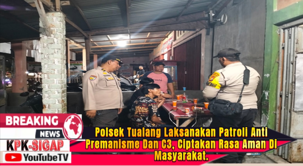 Tualang, Dalam rangka menciptakan situasi kamtibmas yang aman dan kondusif, Kepolisian Sektor (Polsek) Tualang melaksanakan patroli pada Minggu malam (4/5/2025) mulai pukul 20.00 WIB.