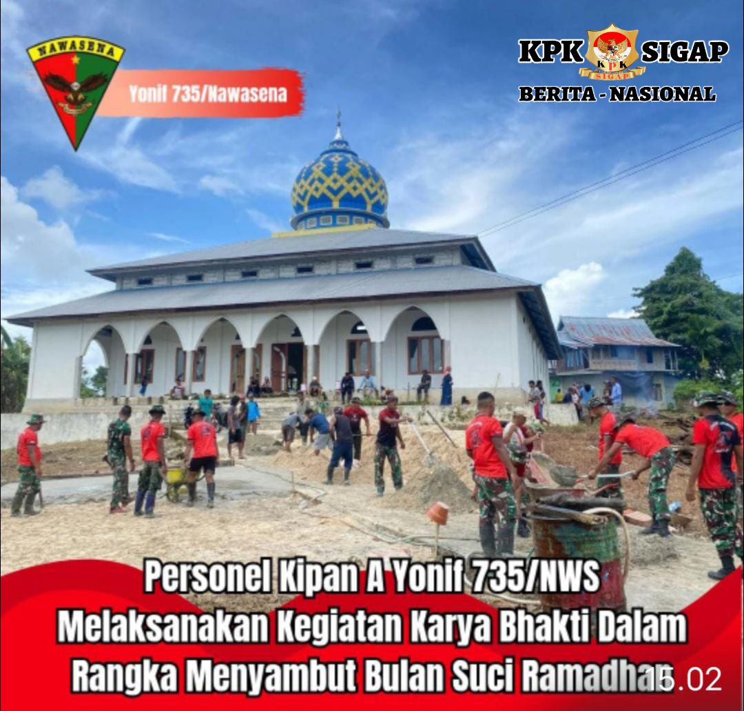 Dua puluh lima Prajurit (25 ) Personel Kipan A Yonif 735/Nawasena di bawa komando Lettu Inf Aridjal Hatuala melaksanakan karya Bhakti bersama masyarakat Desa Durjela kabupaten Kepulauan Aru, Provinsi Maluku.