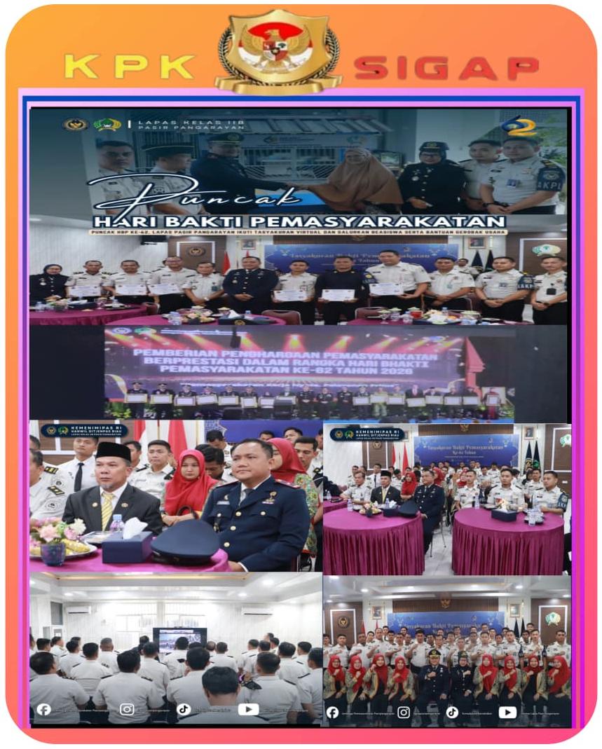 Lembaga Pemasyarakatan (Lapas) Kelas IIB Pasir Pangarayan mengikuti kegiatan Tasyakuran Hari Bakti Pemasyarakatan (HBP) ke-62 Tahun 2026 yang diselenggarakan secara terpusat oleh Direktorat Jenderal Pemasyarakatan pada Senin (27/04/2026).
