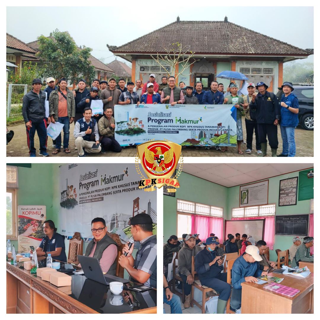 PT Pupuk Sriwidjaja Palembang (Pusri) berkunjung ke Desa Catur Kecamatan Kintamani Kab.Bangli Prov. Bali untuk mengadakan sosialisasi budiaya tanaman kopi menggunakan pupuk NPK Kopi 18-8-18 produksi Pusri bersama Badan Penyuluhan Pertanian Kintamani Barat dan petani kopi pada kamis 13 Juni 2024 di Kantor BPP Kintamani Barat.