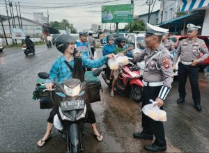 “ Kami ingin berbagi di momen bulan ramadhan dengan masyarakat sekaligus mengingatkan pentingnya tertib berlalu lintas di jalan raya. Patuh dan taat terhadap peraturan berlalu lintas sangat berperan penting dalam menjaga keselamatan dijalan raya. Semoga melalui kegiatan ini, para pengendara semakin sadar pentingnya keselamatan di jalan raya sehingga angka pelanggaran dan kecelakaan dapat diminimalisir, dan masyarakat lebih peduli terhadap keselamatan diri sendiri serta pengguna jalan lainnya,” ujar AKP Angga.