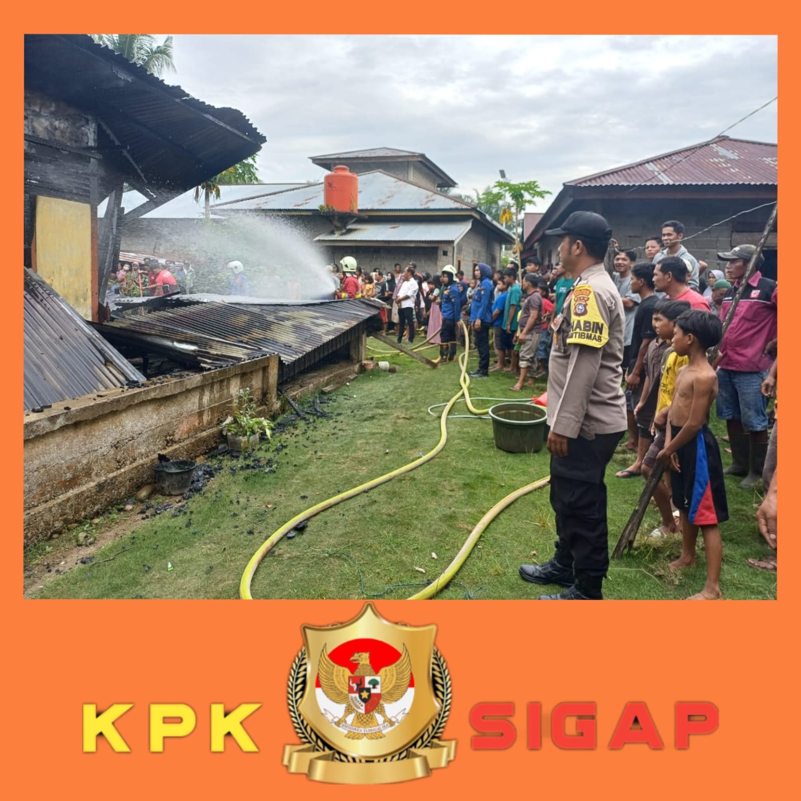 Babinkamtibmas langsung menghubungi pemadam Kebakaran (Damkar) Rokan Hulu.