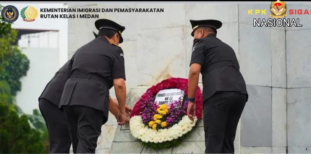 Rumah Tahanan Negara (Rutan) Kelas I Medan Direktorat Jenderal Pemasyarakatan (Ditjenpas) Sumatera Utara, ikuti upacara sekaligus tabur bunga di Taman Makam Pahlawan (TMP) Bukit Barisan Medan yang merupakan serangkaian kegiatan dalam rangka memperingati hari bhakti imigrasi ke-75 tahun 2025, Kamis (23/01/25).