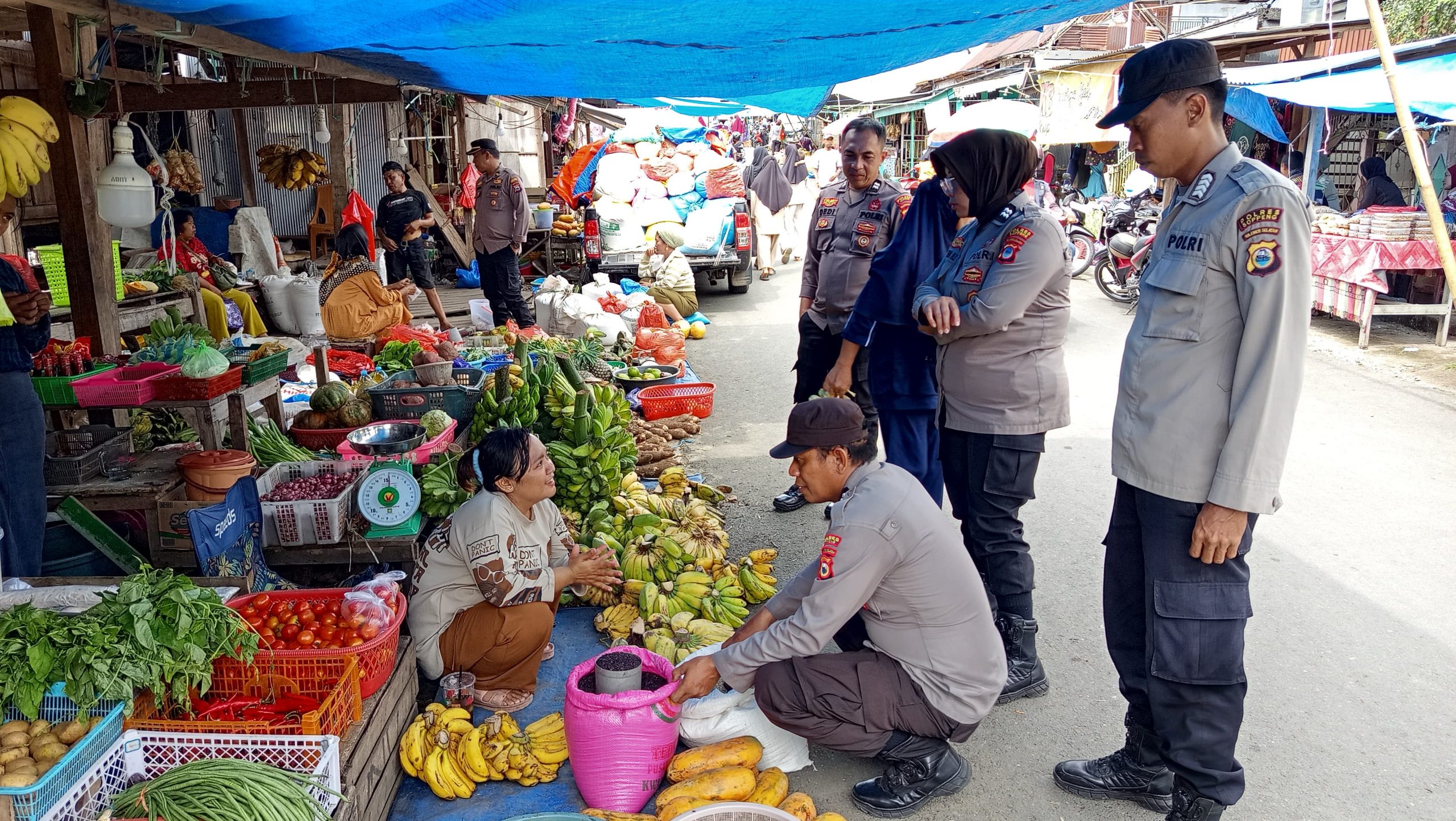 SOPPENG,- KPKSigap.com.// Satuan Binmas Polres Soppeng, yang dipimpin oleh Kepala Bagian Operasional (KBO) Binmas, melakukan giat monitoring harga sembako dan penyuluhan keamanan dan ketertiban masyarakat di Pasar Lolloe. Rabu, 16 April 2025.