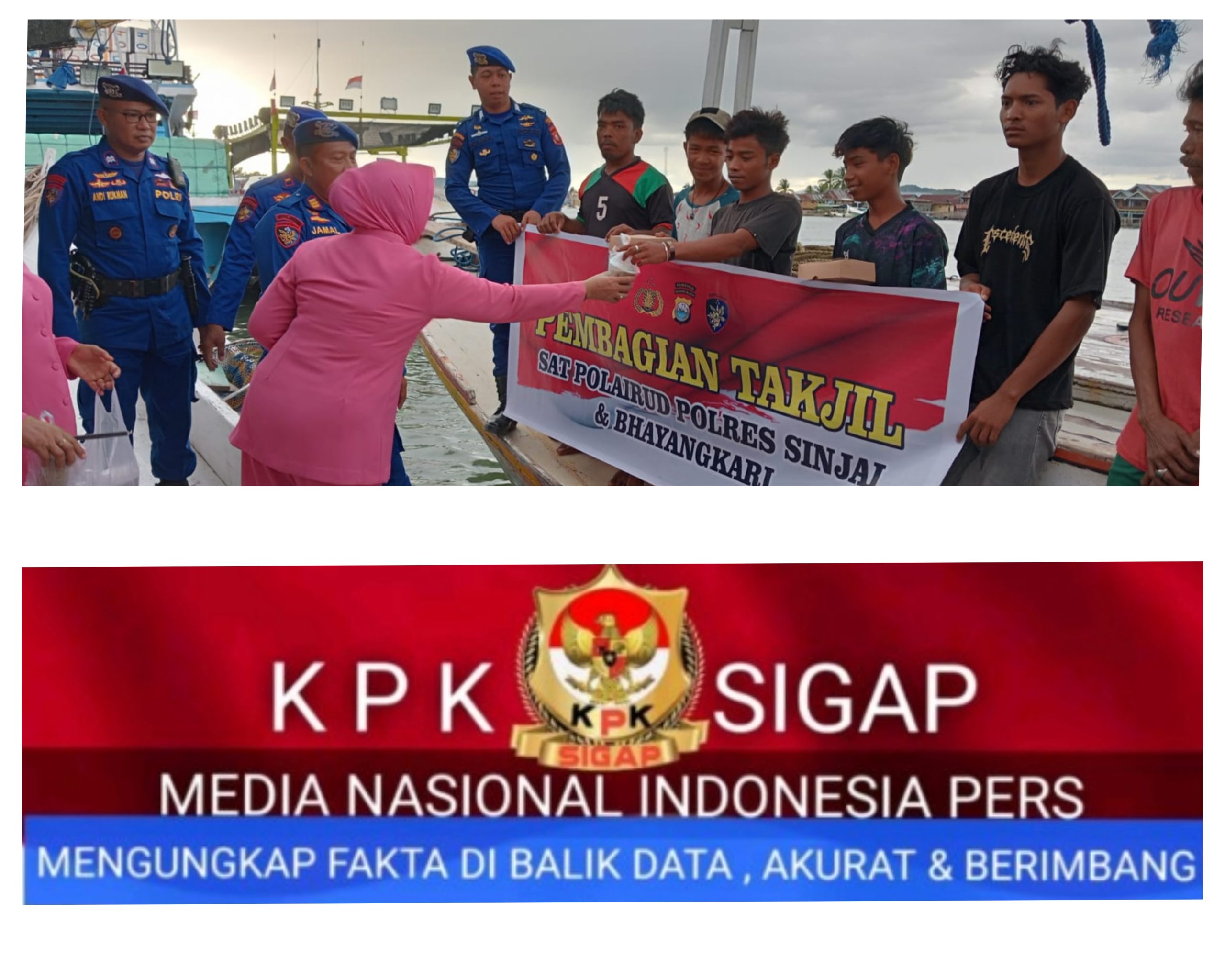 Sinjai –KPK SIGAP COM // Menjelang berbuka puasa, Satuan Polisi Air dan Udara (Sat Polairud) Polres Sinjai bersama Bhayangkari menggelar kegiatan berbagi takjil sebagai bentuk kepedulian terhadap masyarakat pesisir.
