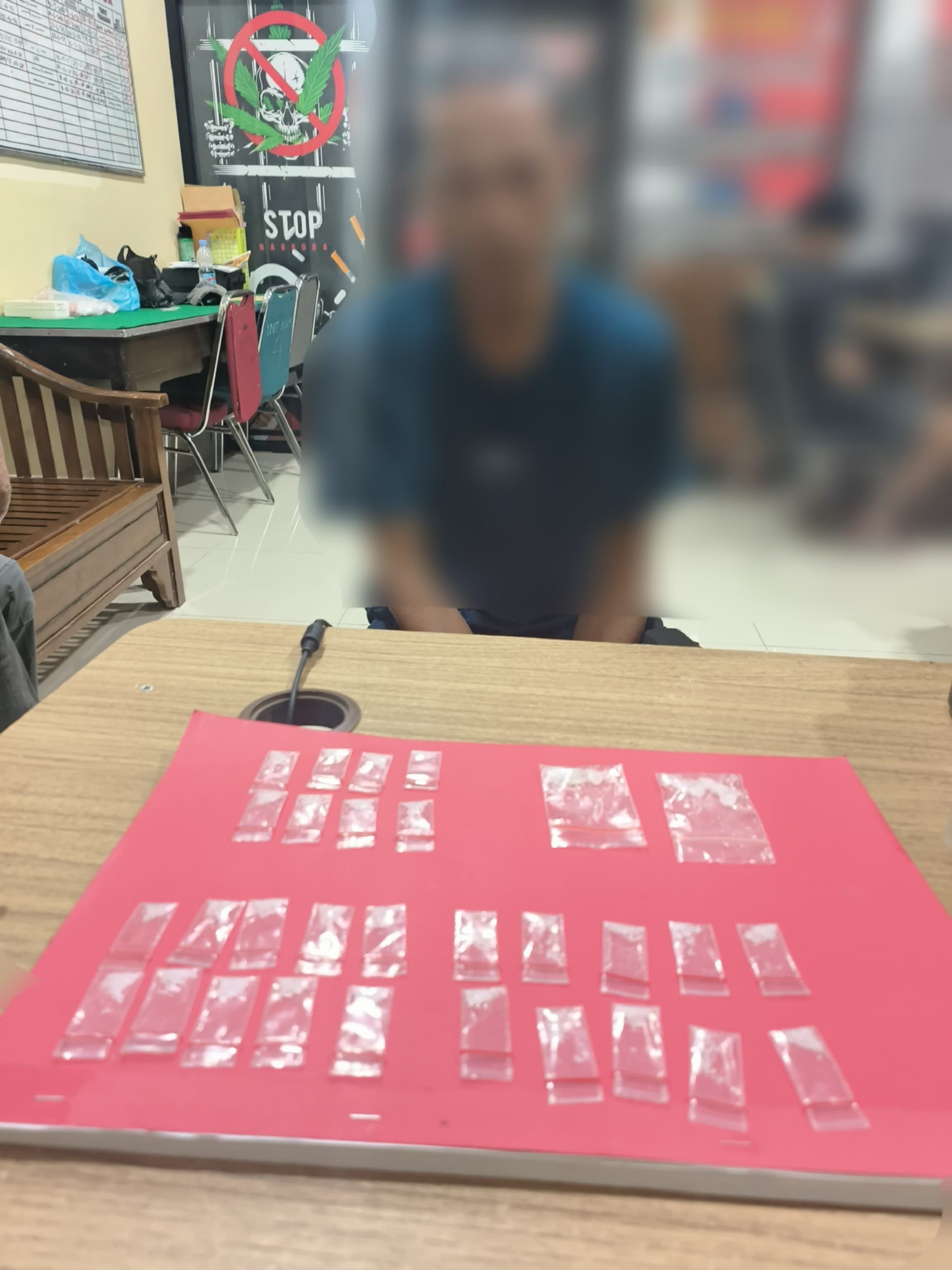 Setelah diamankan dan digeledah, pelaku mengakui menyimpan narkotika jenis sabu di lokasi sekitar. Petugas kemudian menemukan 4 shaset plastik bening yang berisi total 30 paket sabu dengan berat kotor 6,36 gram, diduga siap edar.