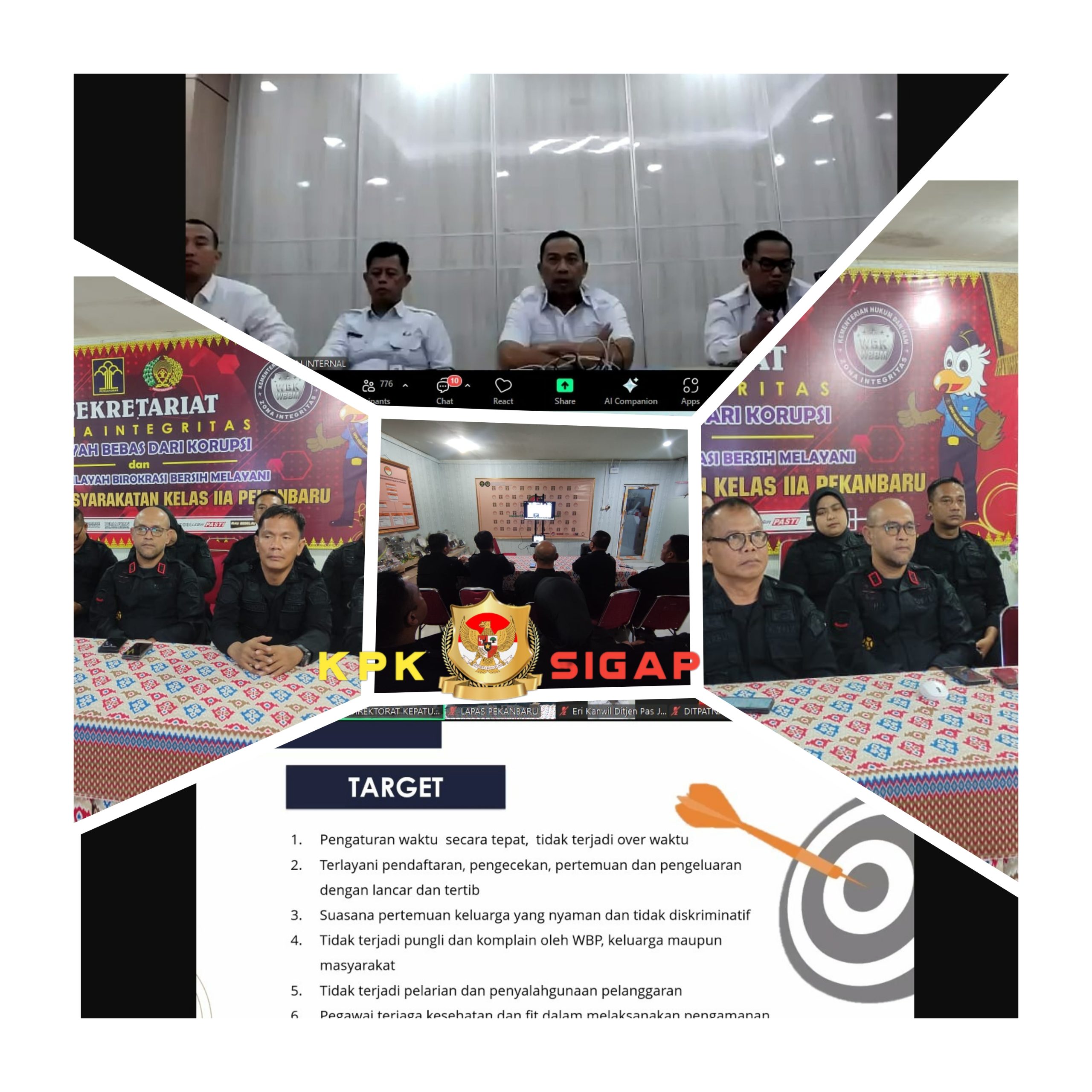 Kegiatan yang berlangsung di Ruang Sekretariat WBBM Lapas Pekanbaru ini diikuti oleh Kepala Lapas (Kalapas) Pekanbaru, Erwin Fransiskus Simangunsong, pejabat struktural, serta staf yang bertugas dalam pelayanan kunjungan.