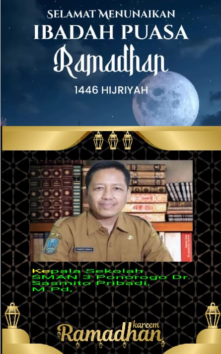 Bulan suci ramadhan tinggal menghitung hari. Bulan tersebut selalu dinanti-nanti oleh umat muslim di seluruh dunia. Menyambut ramadhan tersebut Kepala Sekolah SMAN 3 Ponorogo Dr. Sasmito Pribadi, M.Pd, mengatakan bahwa ramadhan adalah momen awal menuju kehidupan yang lebih baik.