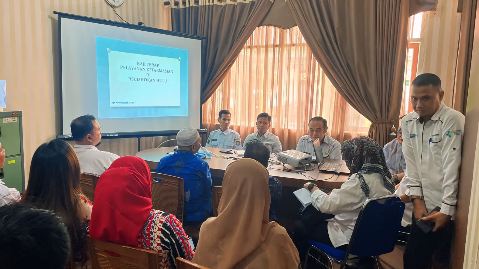 Pemaparan terkait pelayanan kefarmasian dan sistem Instalasi Farmasi di paparkan oleh kepala instalasi farmasi RSUD Rokan Hulu Apt. Anwar Syahadat, S.Farm, M.Farm.