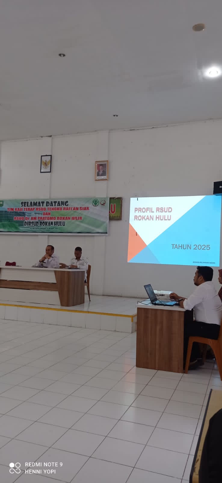 Rombongan di terima di Aula RSUD Rokan Hulu pada jam 09.00 oleh Direktur dan KTU RSUD Rokan Hulu. Rombongan RSUD Tengku Rafi’an Kabupaten Siak selaku KTU Bapak Adi Eka Putra,SP. beserta Kabid Penunjang, Kepala instalasi farmasi, Kepala instalasi RM dan SIMRS, bendahara BLUD dan PPTK BLUD. Sedangkan rombongan RSUD DR. Pratomo dibawahi langsung oleh direktur nya yaitu Ibu Try Buana.T. Dewi dengan KTU dan Kepala Instalasi Farmasi serta Kasubag Keuangan.