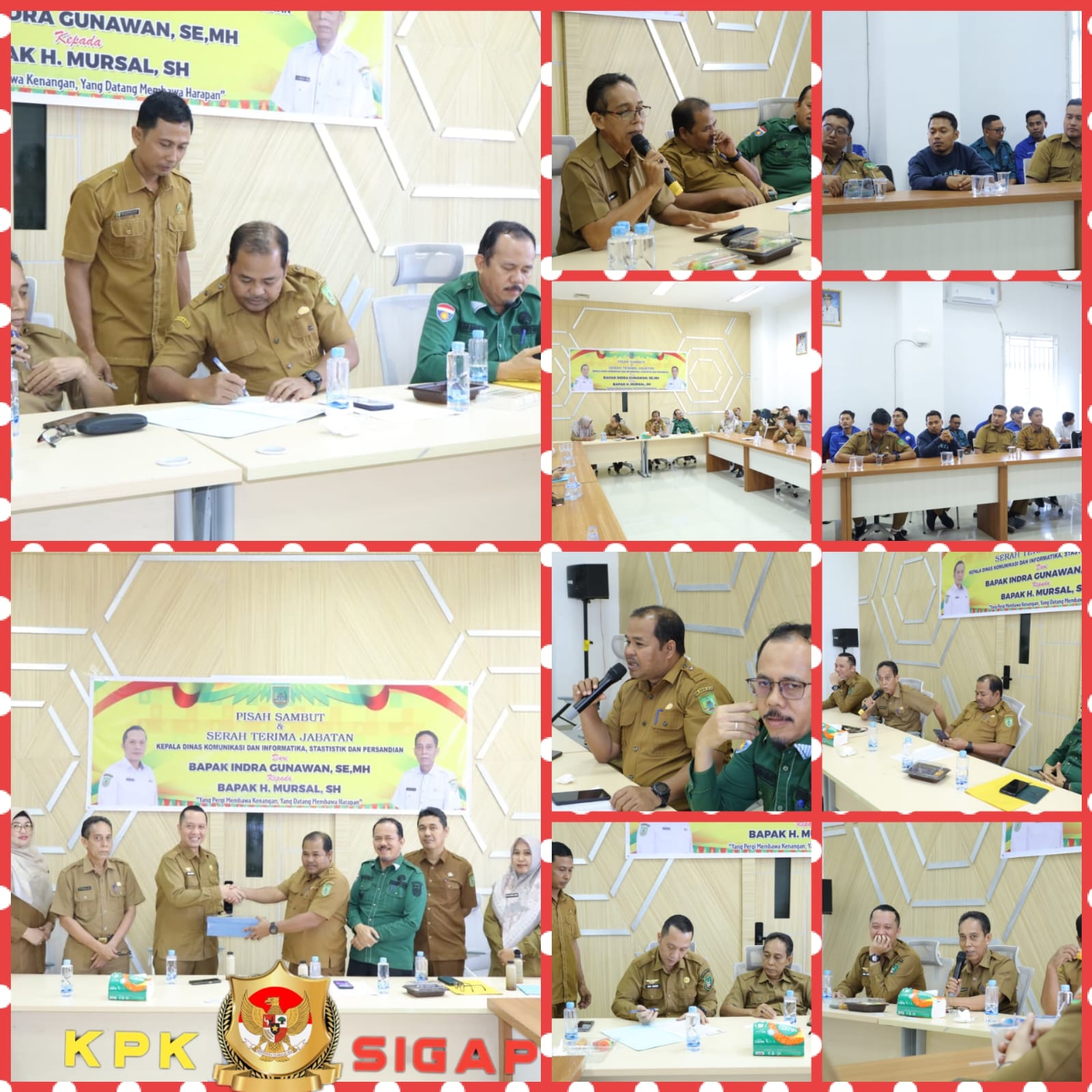 Suasana penuh keakraban dan kebersamaan, Dinas Komunikasi, Informatika, Statistik, dan Persandian Kabupaten Rokan Hilir menggelar acara serah terima jabatan sekaligus pisah sambut Kepala Dinas, dari Bapak Indra Gunawan, S.E., M.H., kepada Bapak H. Mursal SH yang berlangsung di aula Diskominfotik Rohil pada hari Selasa (12/8/2025) di aula Media Centre kantor Diskominfotik Rohil, di lantai 7, Bagansiapiapi, Kabupaten Rokan Hilir, Riau. Acara itu menjadi momen formal pergantian kepemimpinan serta wahana mempererat silaturahmi dan memperkokoh komitmen bersama.