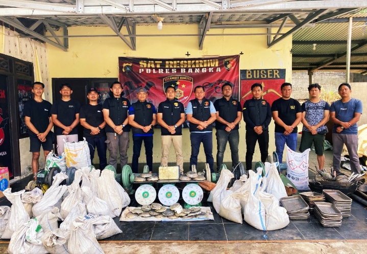 Total barang bukti yang diamankan sebanyak (8) karung pasir timah Bercampur arang, seberat 215 Kg, (27) karung pasti tima seberat 948 Kg (3), karung timah dalam bentuk Balok bulat seberat (77) Kg, (1) Balok timah persegi, seberat (5) Kg selain itu juga di, Amankan berbagai jenis alat dan, peralatan peleburan pasir timah, Pungkasnya.