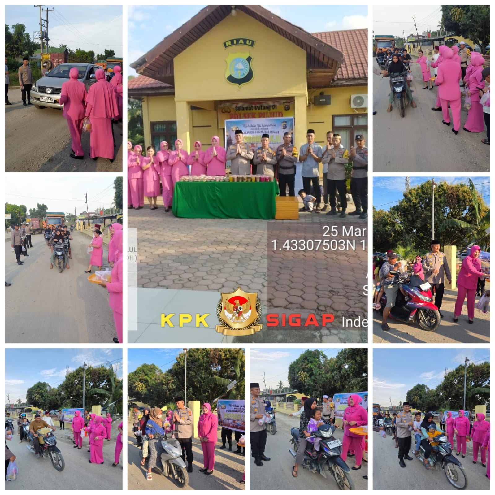 Pada hari Selasa 25 Maret 2024 Pukul 17.00 WIB. Para Polsek Pujud Polres Rohil bersama dengan Bhayangkari Ranting Polsek Pujud, kembali melaksanakan kegiatan pembagian Takjil kepada Masyarakat. Kegiatan rutin pada Bulan Ramadhan 1446 H, Polri ini di gelar di Depan Mapolsek Pujud di Jln Lintas Pujud – Tanjung Medan Kepenghuluan Pujud Kecamatan Pujud Kabupaten Rokan Hilir.