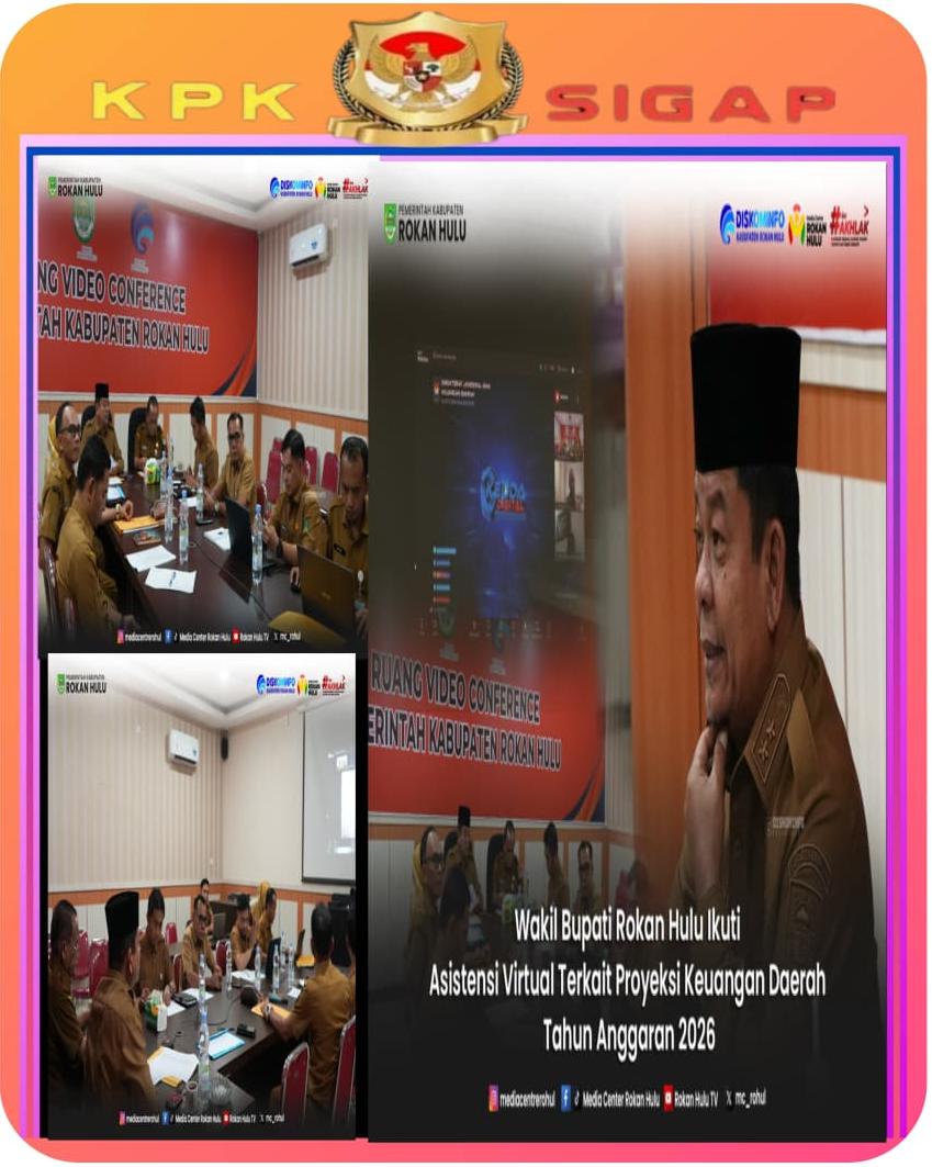 Wakil Bupati Rokan Hulu, H. Syafaruddin Poti, SH, MM, menghadiri rapat penting mengenai asistensi daerah terkait proyeksi kemampuan keuangan daerah untuk Tahun Anggaran (TA) 2026. Rapat yang dilaksanakan secara virtual ini berfokus pada pembahasan daerah-daerah yang proyeksi pendapatannya dinilai belum memenuhi kebutuhan belanja minimum.