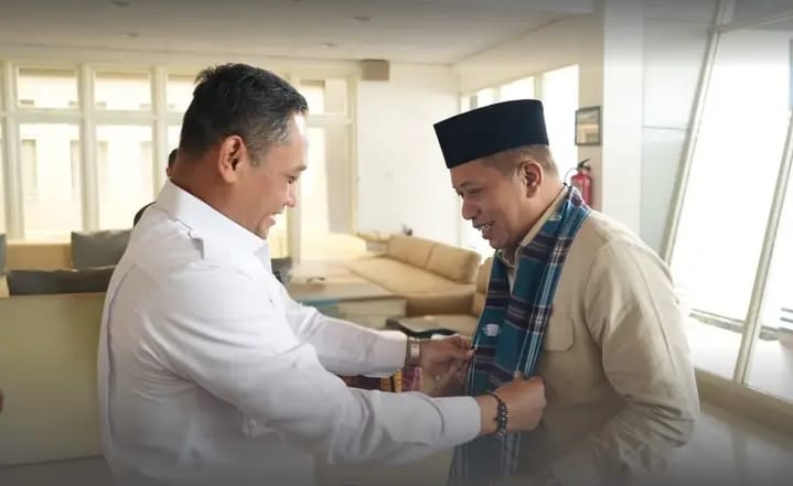 “Assalamualaikum, apa kabar Pak Wamen, sehat. Semoga lancar kegiatan kita hari ini pak,” sambut Wagub Seno Aji yang juga mengalungkan syal khas sarung Samarinda.