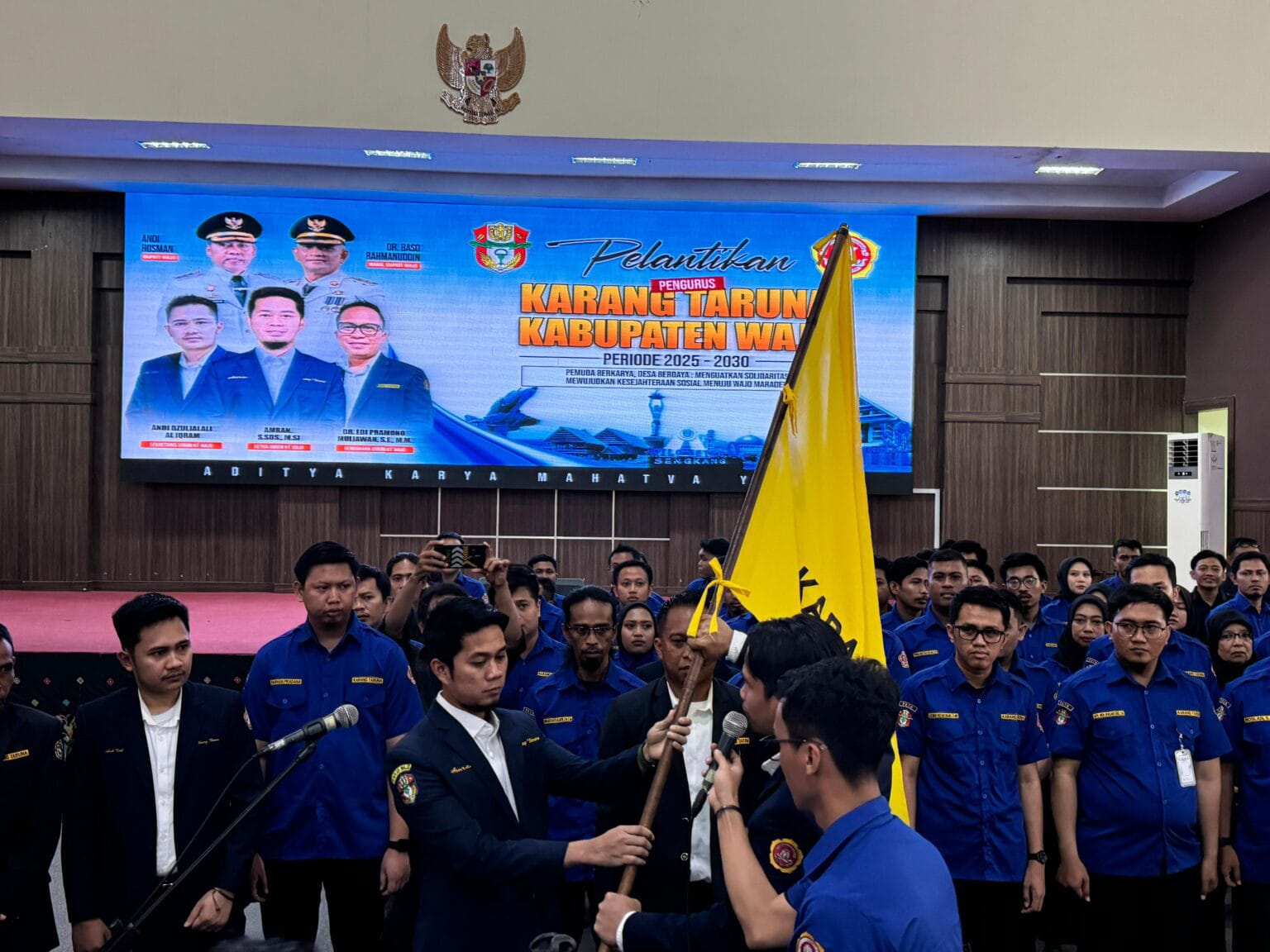 Acara Pelantikan dan Pengukuhan Pengurus Karang Taruna Kabupaten Wajo Masa Bakti 2025-2030 dihadiri oleh Bupati Wajo H. A. Rosman,S.Sos.,MM, Wakil Ketua DPRD Prov.Sulsel Supriadi Arif,S.pd, Waka Polres Wajo Kompol Hardjoko,S.H.M.H. Kasdim Mayor inf.Ashar, para anggota DPRD Kabupaten Wajo, para Camat Se.Kab.Wajo, para Kades dan sekdes Se.Kab.Wajo, Ketua Karang Taruna Periode 2025-2030 Amran, S.Sos.,M.Si, para Pengurus Karang Taruna Periode 2025-2030 dan undangan lainnya.