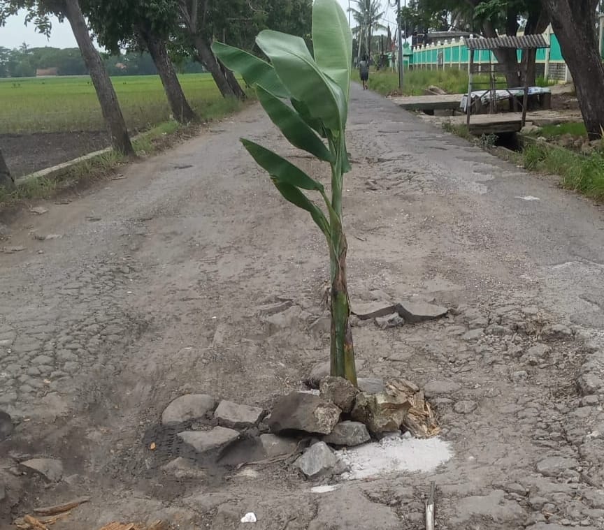 Kpksigap.com // Sukawangi – Sudah mendekati hari Idhul Fitri 1447 H 2026,jalan rusak belum juga di perbaiki oleh pemerintah Daerah Kabupaten Bekasi,hal ini menjadi aksi warga melakukan menanam pohon pisang di ruas jalan raya yang rusak depan Kantor Kecamatan Sukawangi Kabupaten Bekasi.Senin (02/03/2026).